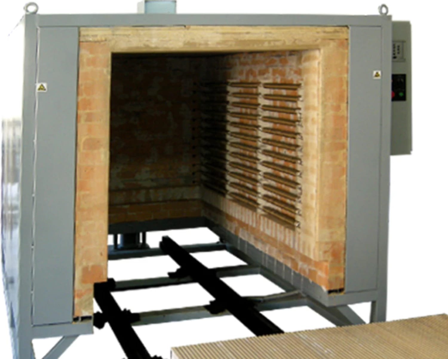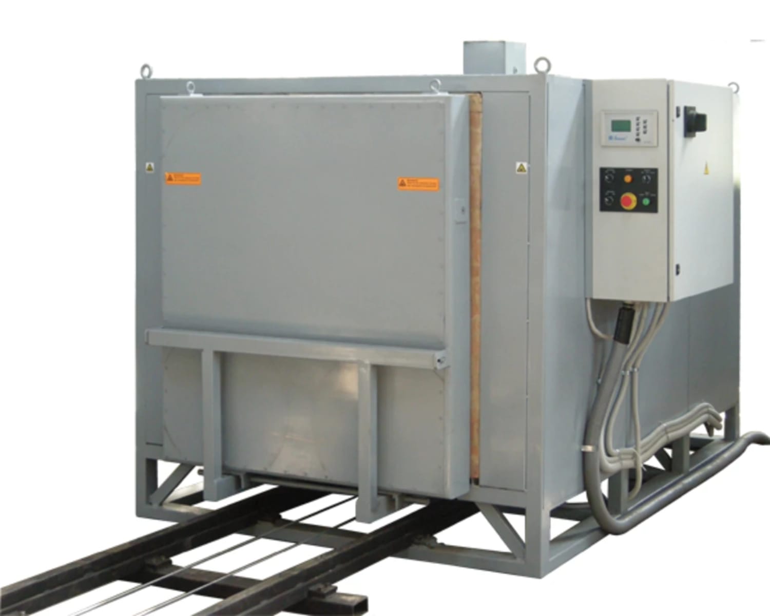 The electric resistance furnace AproTerm M2000 is designed for technological processing of metal and non-metal materials requiring temperature up to 500 oC. AproTerm M2000 features a trolley floor, which allows processing of material or equipment with dimensions 1000 x 1000 x 2000 mm and distributed load up to 1500 kg. The heaters in the chamber are open, distributed on both sides. The process is controlled by a PLC and registered in controller's memory.
