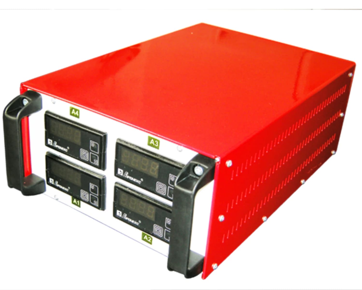 Temperature controllers are galvanically separated from one another, allowing power-supply of all types of integrated and non-integrated heating cartridges. Important feature of each temperature controller is the semiconductor relay output for switching the heating element. All controllers are protected – there is a failure indication in case of input or output disconnection.